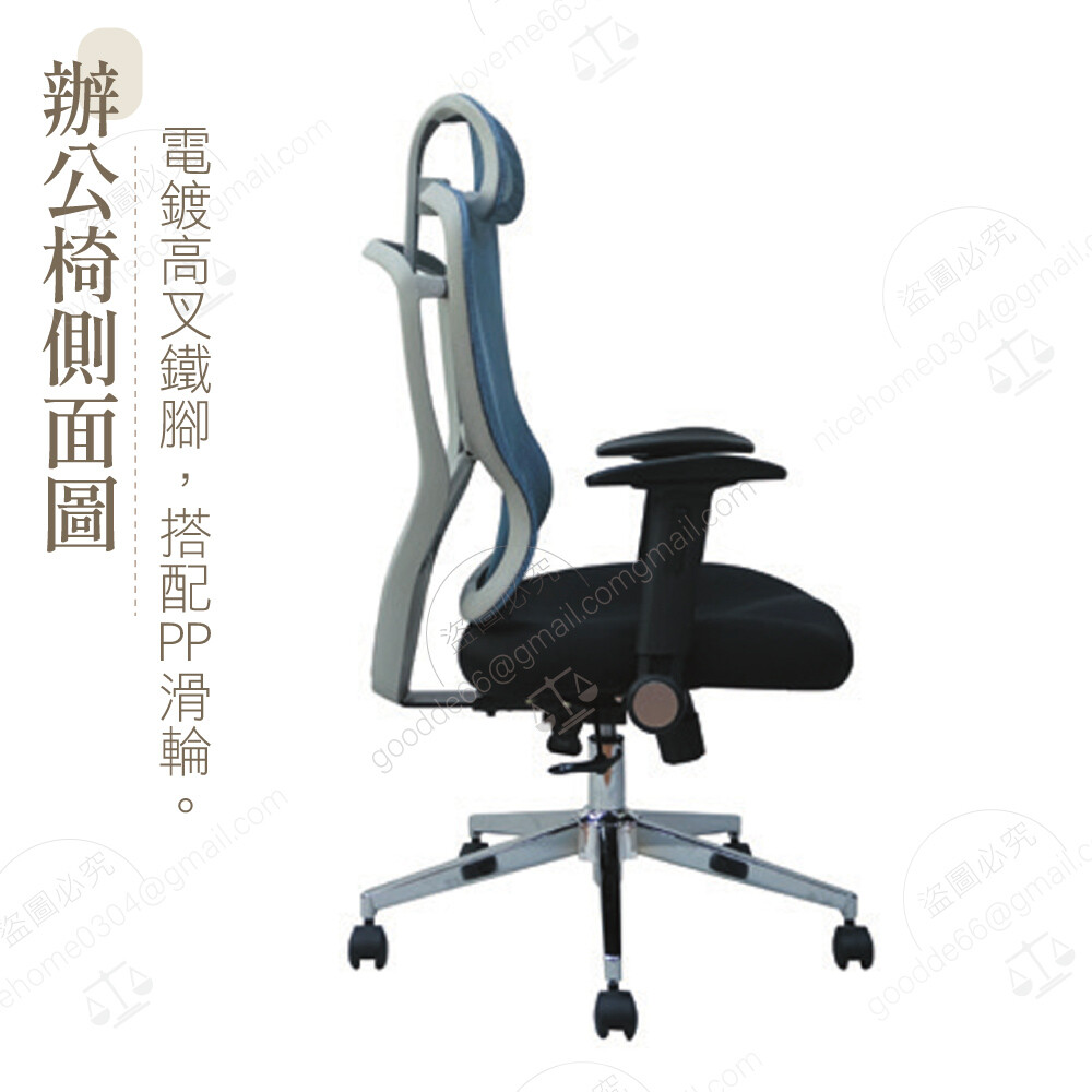 頭枕可調高低 電鍍高叉鐵腳 PP滑輪
