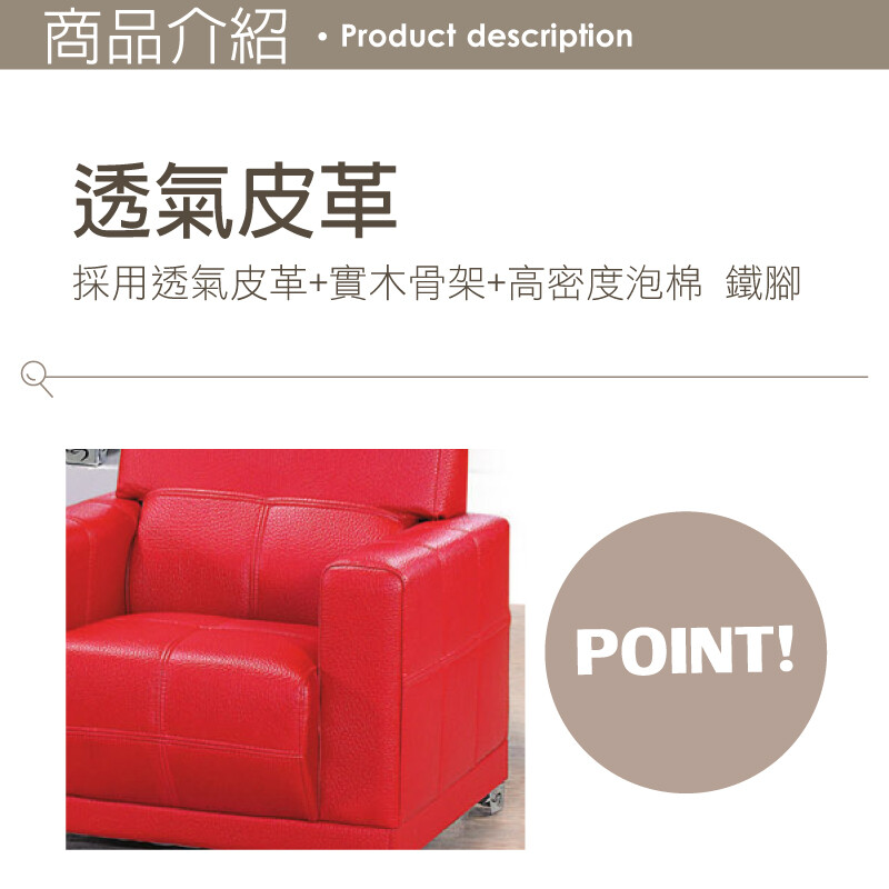 透氣皮革+實木骨架+高密度泡棉 鐵腳