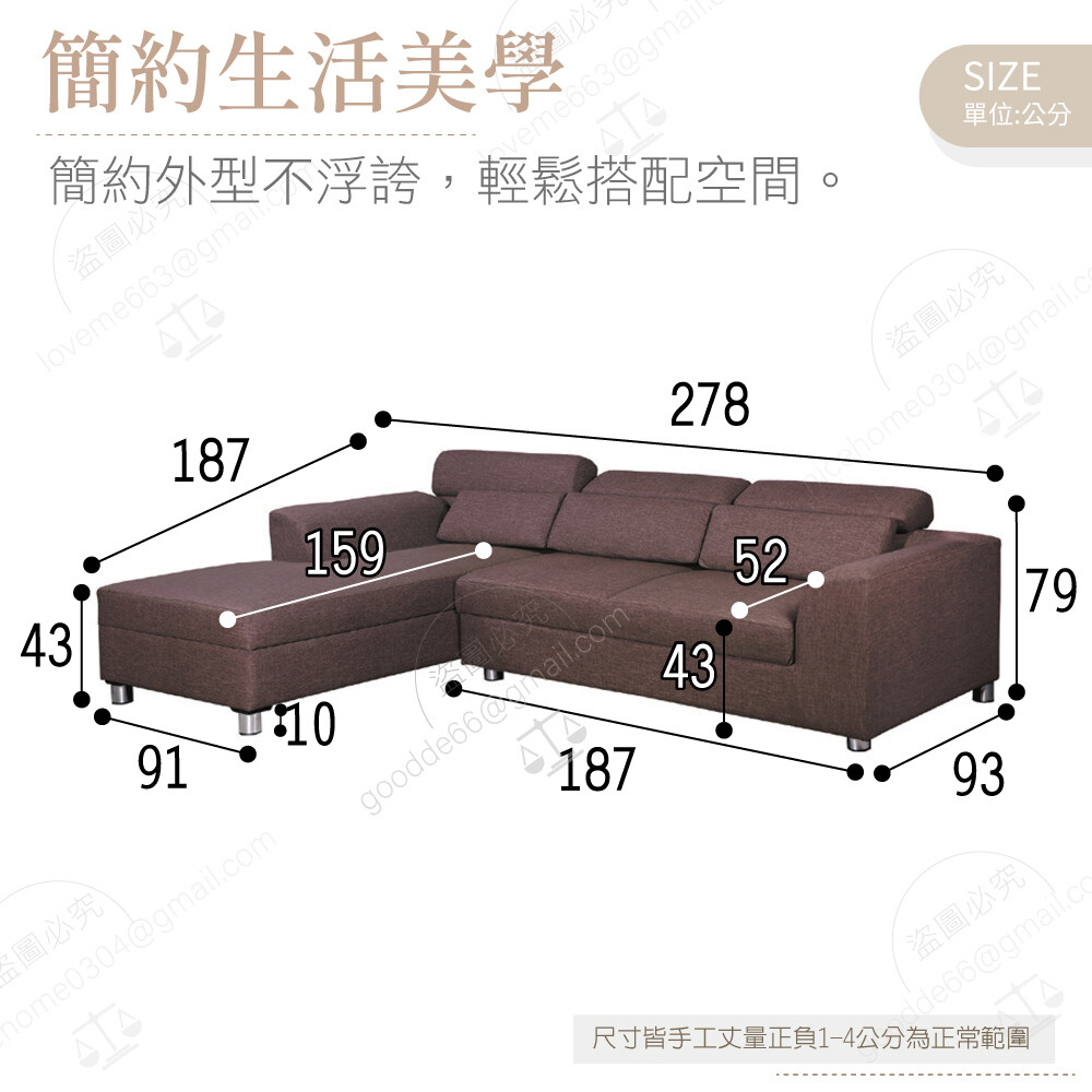 不含靠枕 坐深63 含靠枕 坐深52公分