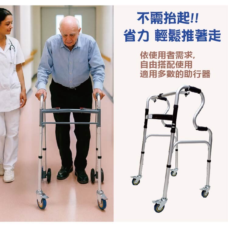 更換成帶輪助行器:不需抬起,省力 輕鬆走