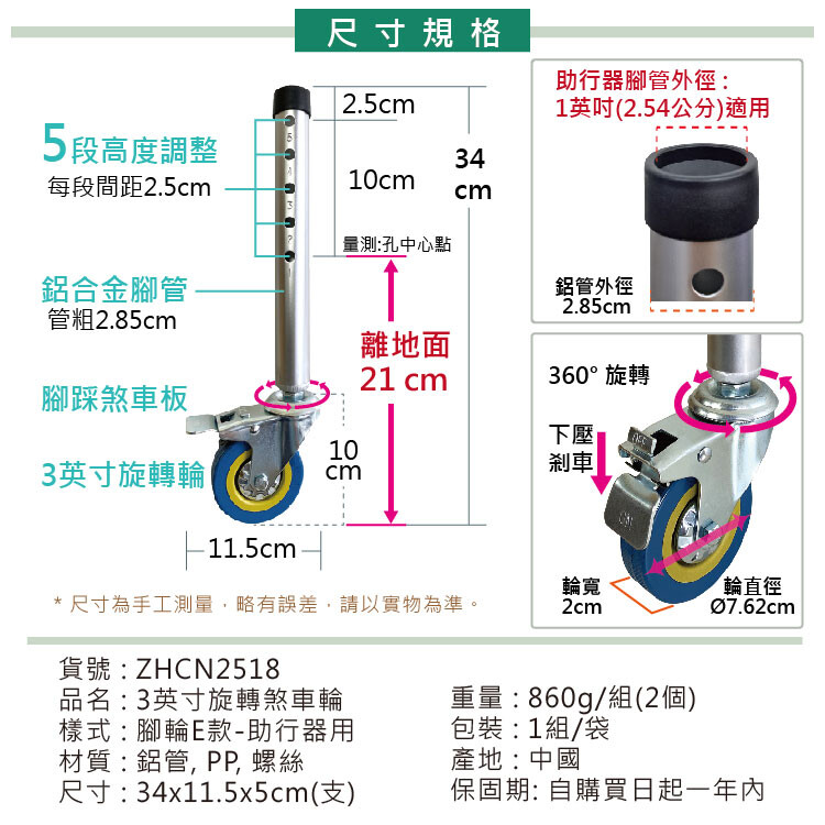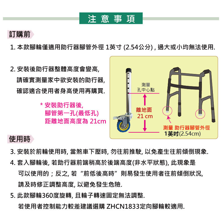 ★☆★ 適用助行器腳管外徑 : 1英吋 (2.54公分)