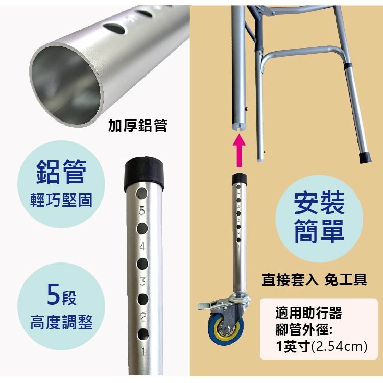 助行器用腳輪,輔助輪,帶輪助行器,復建,助步器,步行輔具,醫療器材,新北市長照輔具特約廠商,老人用品,銀髮族