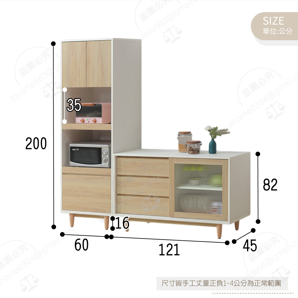 4尺餐櫃下座:寬121×深45×高82公分
