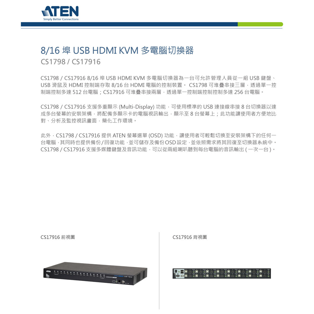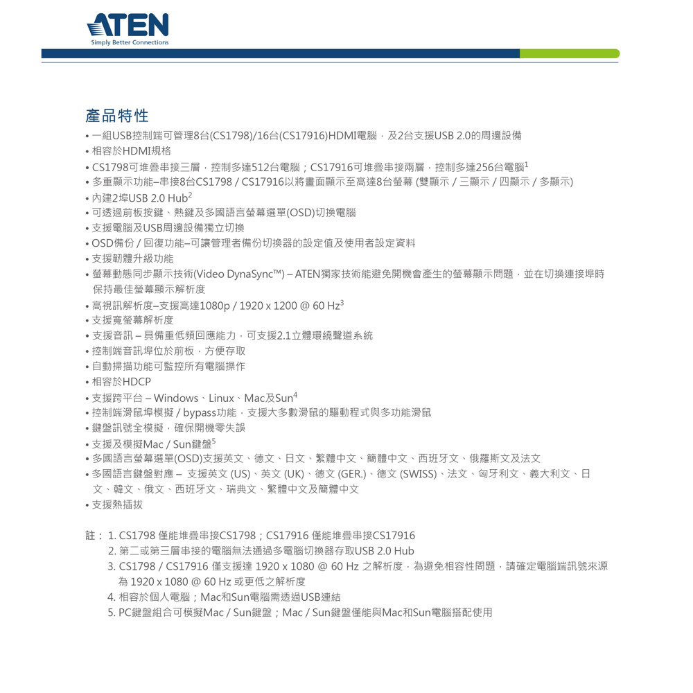 多重顯示功能–串接8台CS1798以將畫面顯示至高達8台螢幕 ( 雙顯示/三顯示/四顯示/多顯示)