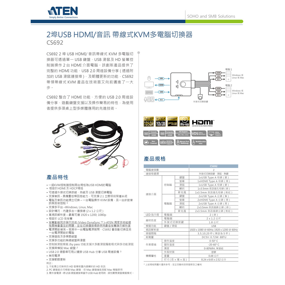 電源開啟偵測 – 若其中一台電腦電源關閉,CS692 會自動切換至另一台電源開啟的電腦