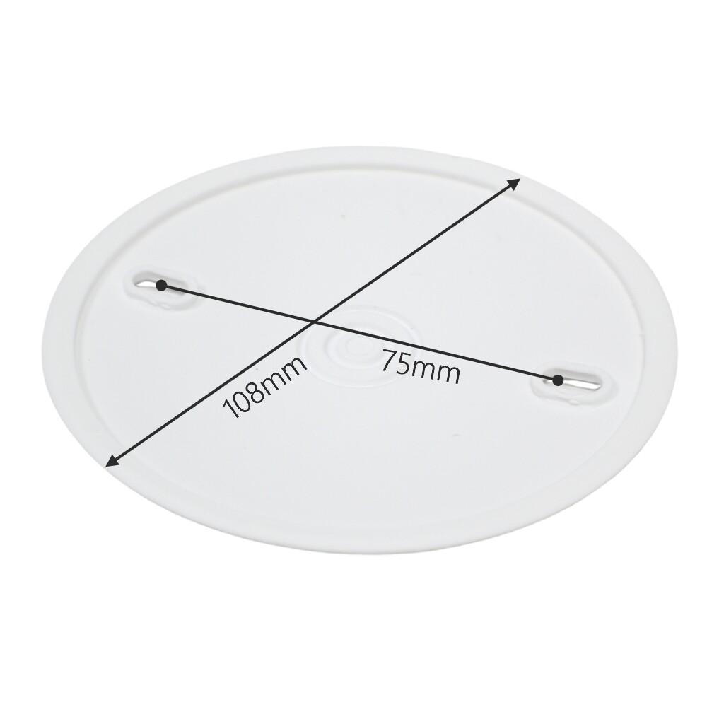 尺寸:108mm×108mm×8mm 材質:塑料 顏色:白 螺絲孔距:約9cm 適用:一般天花板的電燈、燈座、燈泡座。不使用時可安裝盲蓋遮蔽電線及內部。 保存期限:常溫無期限 鑑賞期非適用期. 收到商品後請先檢查.若需退換貨需保持包裝完整喔!