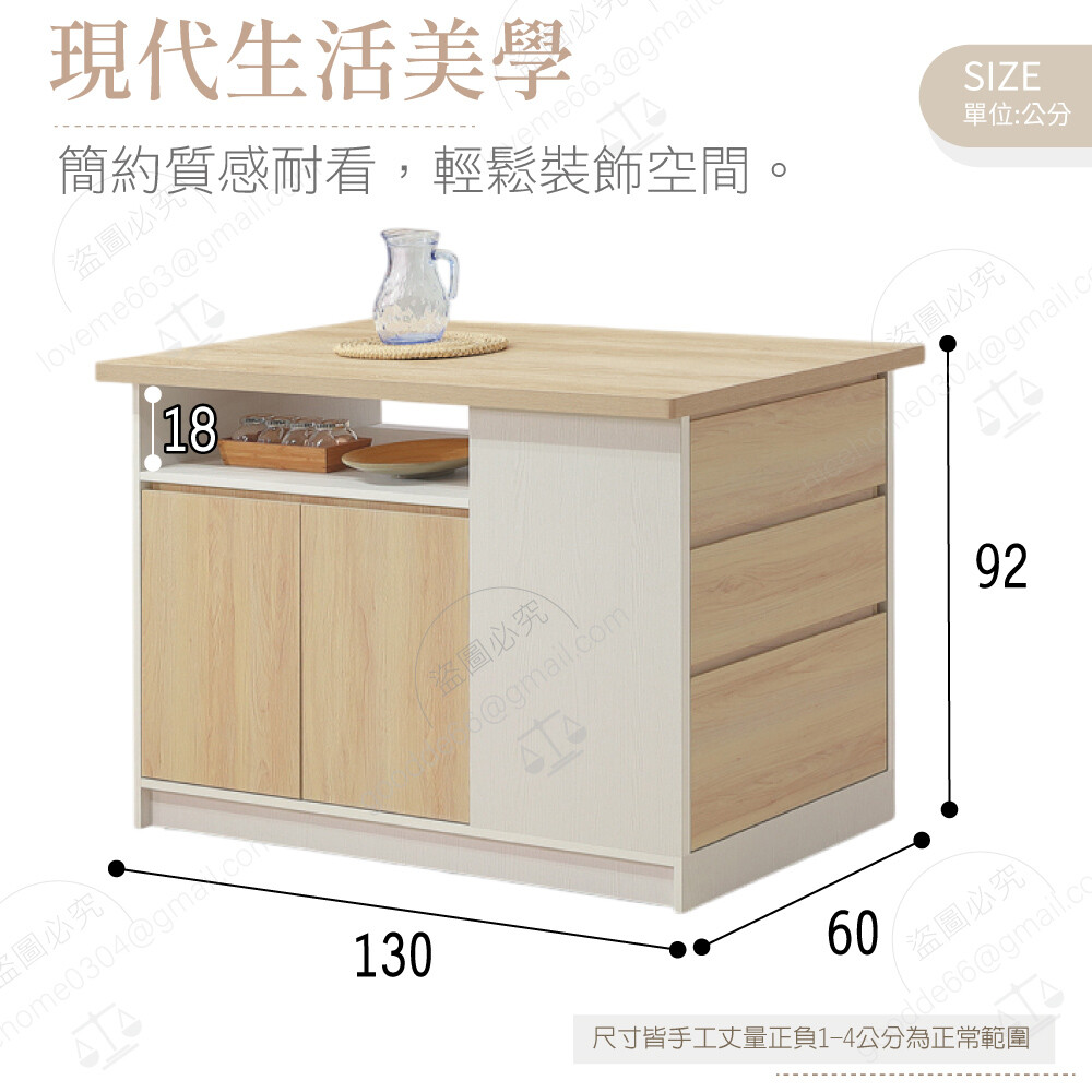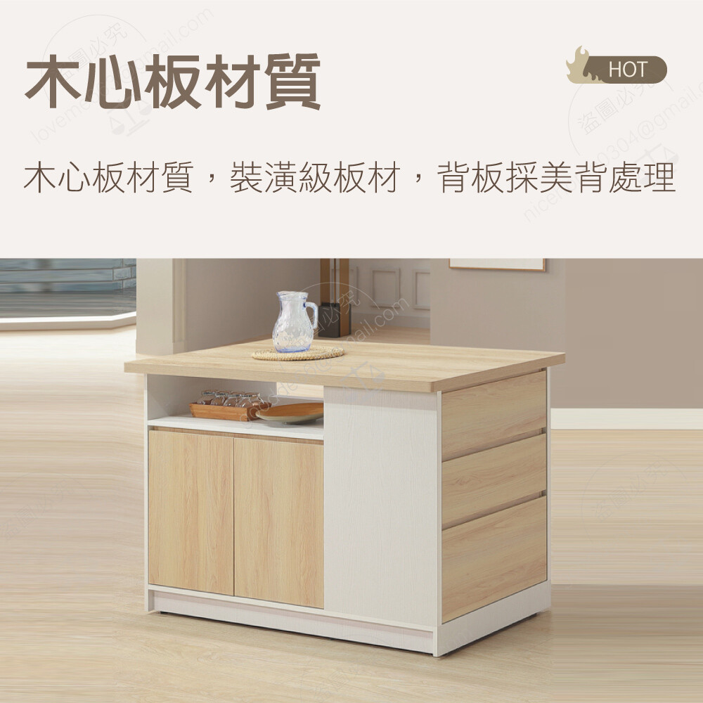 《奈斯家具Nice》083-01-HD 秋楓+白4.3尺中島櫃/面板秋楓