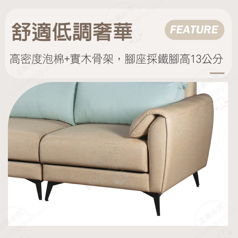 高密度泡棉 實木骨架 鐵腳