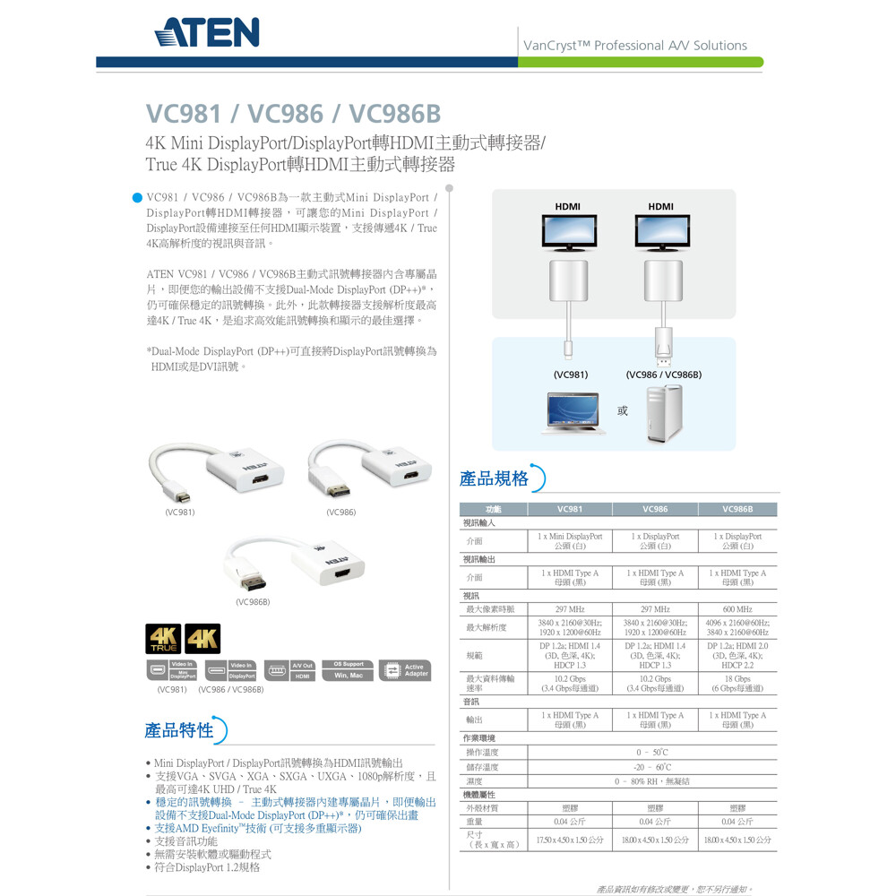 穩定的訊號轉換 – 主動式轉接器內建專屬晶片,即便輸出設備不支援Dual-Mode DisplayPort (DP++),仍可確保出畫
