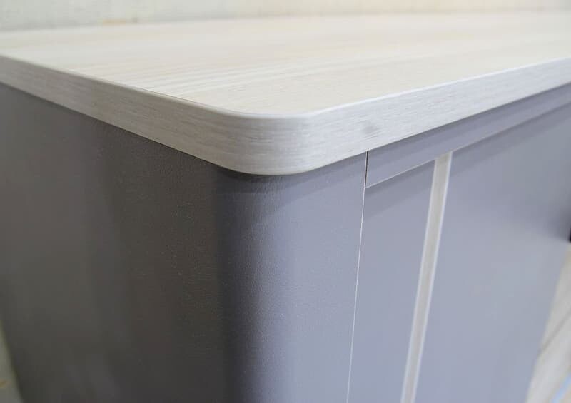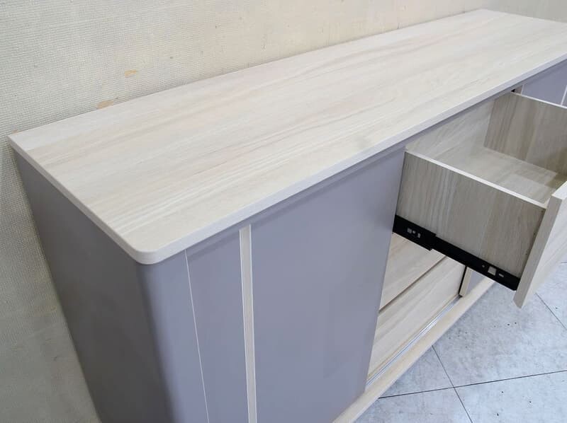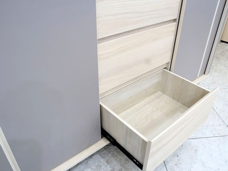 | 材質 | 板材 : 桶身,面板及門板皆為防潮木心板材,堅固耐用 , 11cm高實木腳座 塗裝 : 楓木色+灰色耐磨木皮, 安全圓弧設計 , 外部ABS封邊質感細緻 五金 : 內建三抽採雙截吸入式鋼珠滑軌, 左右滑門設計 , 內附活動隔板可 調高低 , 桌面10mm亮面岩板 |