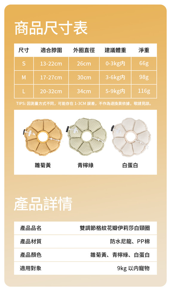 M 規格 : 17 cm - 27 cm / 適用對象 : 3 --- 6 kg