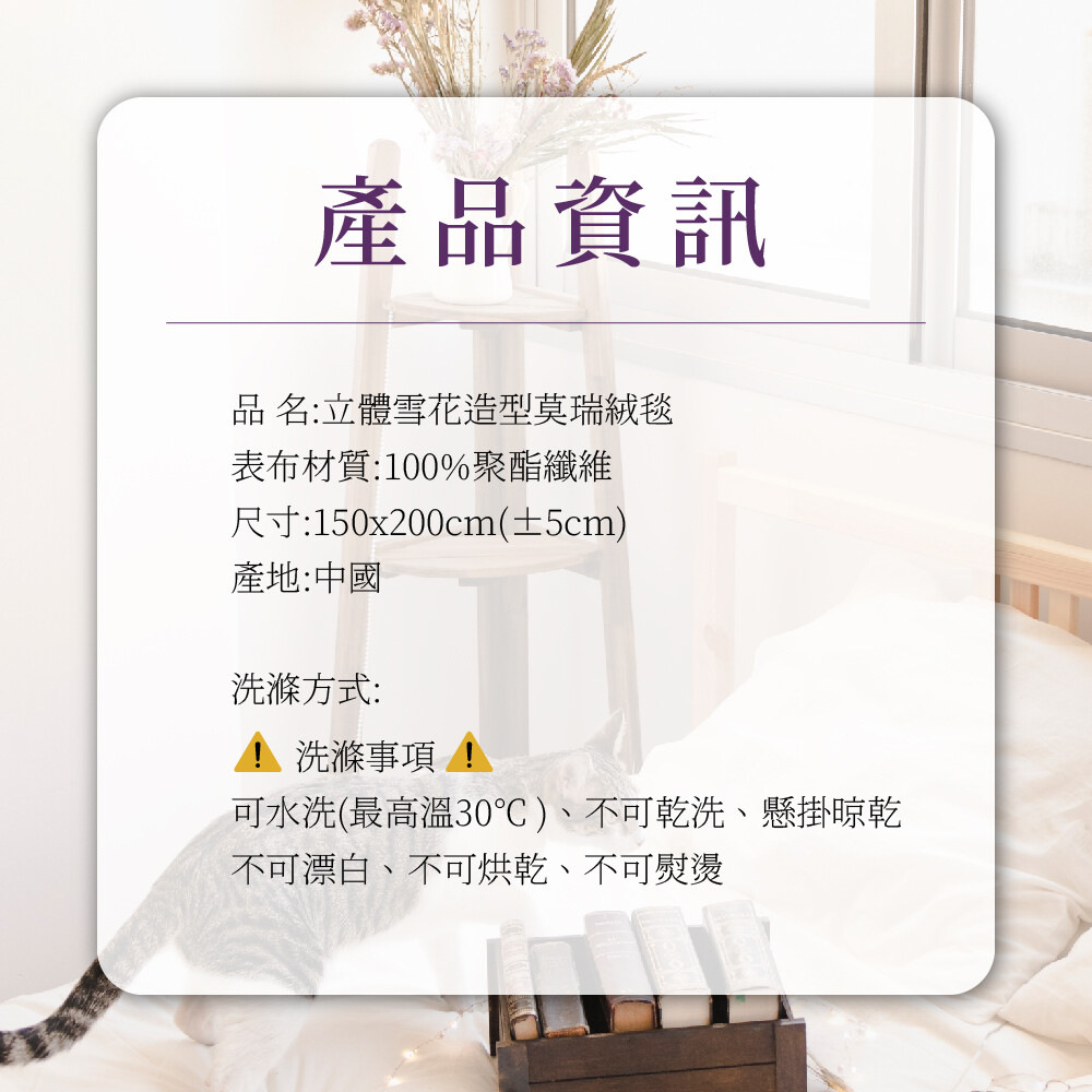 品名:立體雪花造型莫瑞絨毯