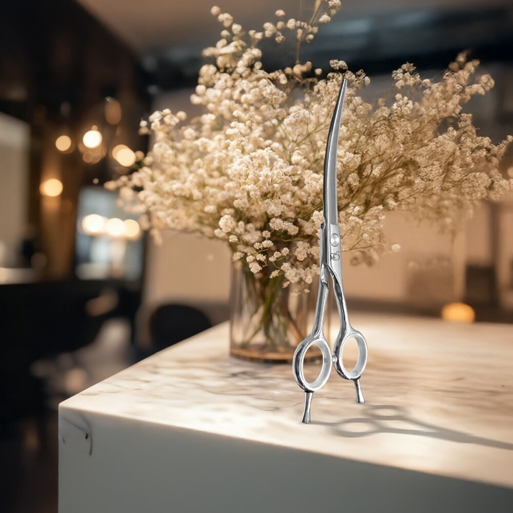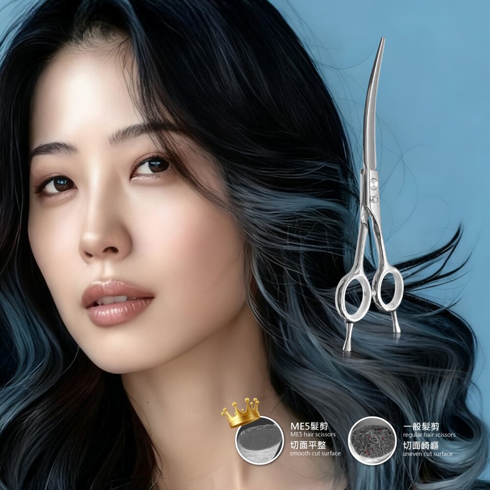 專業級髮型修剪用彎剪:6.5 吋曲度刀刃,適合修層次、塑形、局部曲線調整。