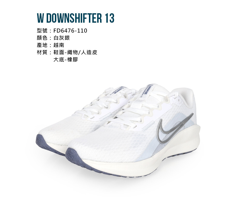 NIKE W DOWNSHIFTER 13 女慢跑鞋-運動 路跑 白灰銀