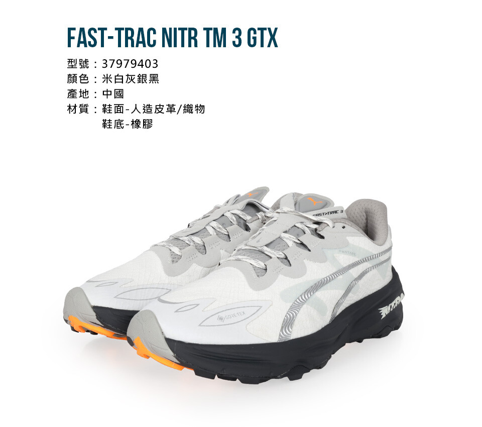 PUMA FAST-TRAC NITR TM 3 GTX 男防水越野慢跑鞋-防水 米白灰銀黑