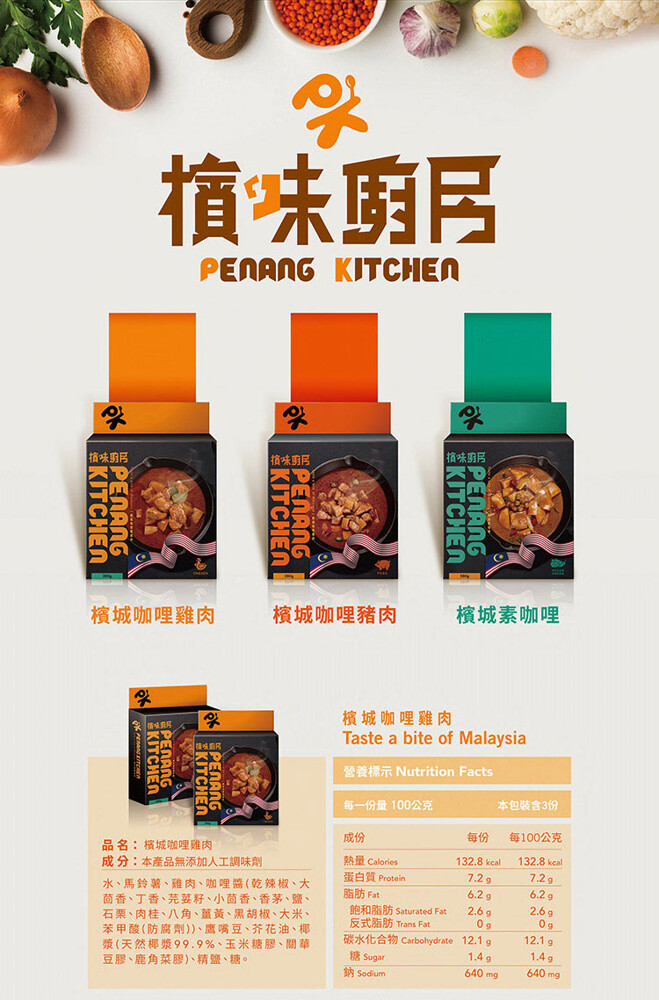 成分:水、馬鈴薯、豬肉(台灣)、咖哩醬(乾辣椒、大茴香、丁香、芫荽籽、小茴香、香茅、鹽、石栗、肉桂、八角、薑黃、黑胡椒、大米、苯甲酸(防腐劑))、鷹嘴豆、芥花油、椰漿(天然椰漿99.9%、玉米糖膠、關華豆膠、鹿角菜膠)、精鹽、糖。