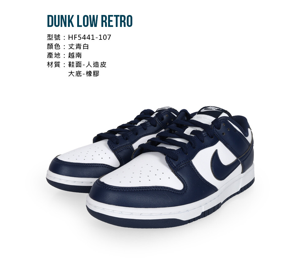 NIKE DUNK LOW RETRO 男運動休閒鞋-戶外 休閒 丈青白
