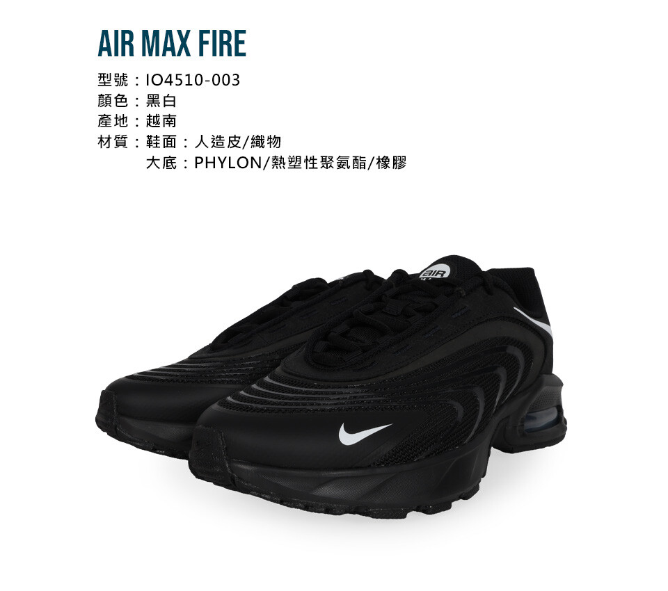 NIKE AIR MAX FIRE 男氣墊緩震運動鞋-慢跑 運動 休閒 黑白