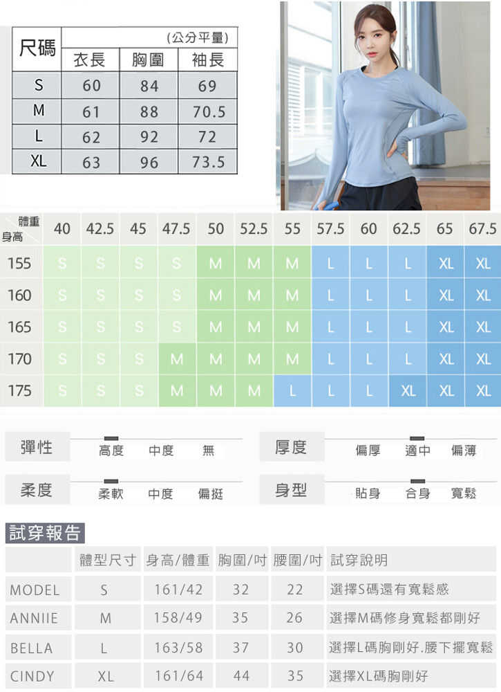 S(衣長60cm, 胸圍84cm, 袖長69cm)