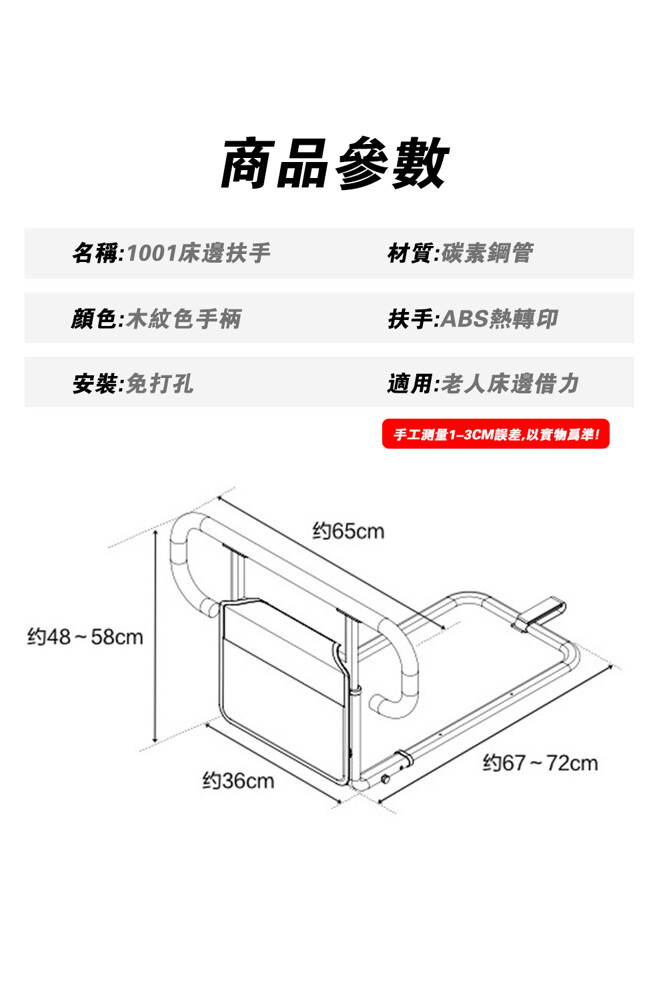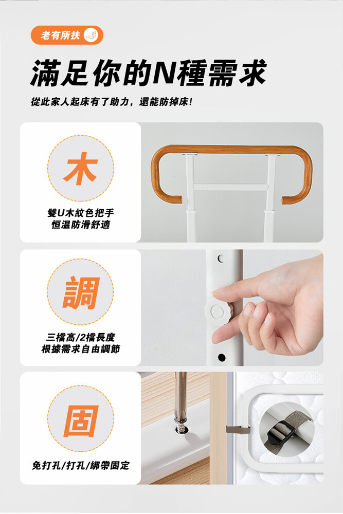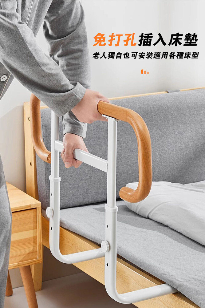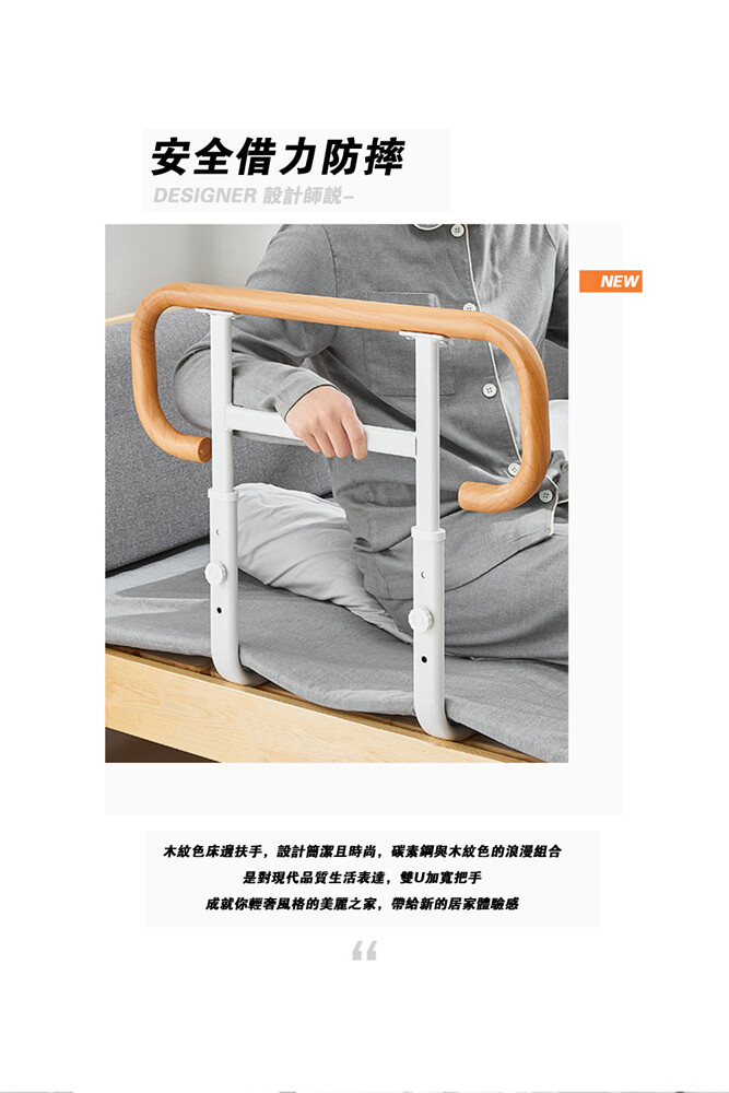 床邊扶手欄杆 安全起身木紋輔助器 床上護欄(老年人起床助力架/防摔安全扶手