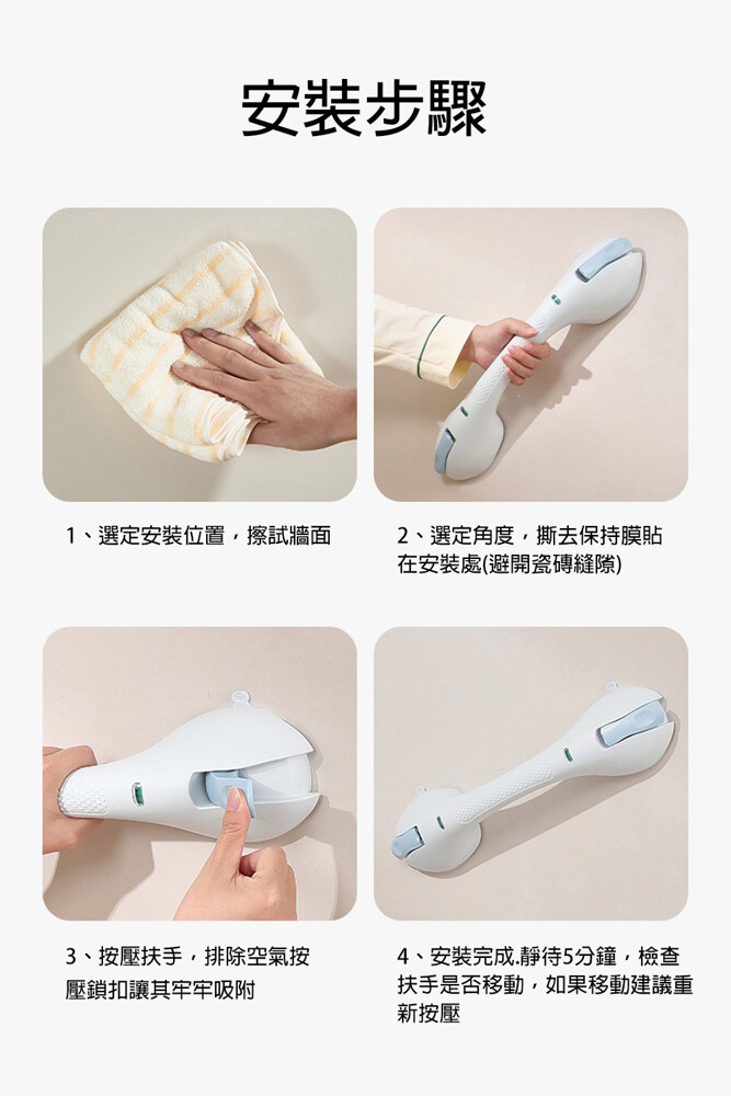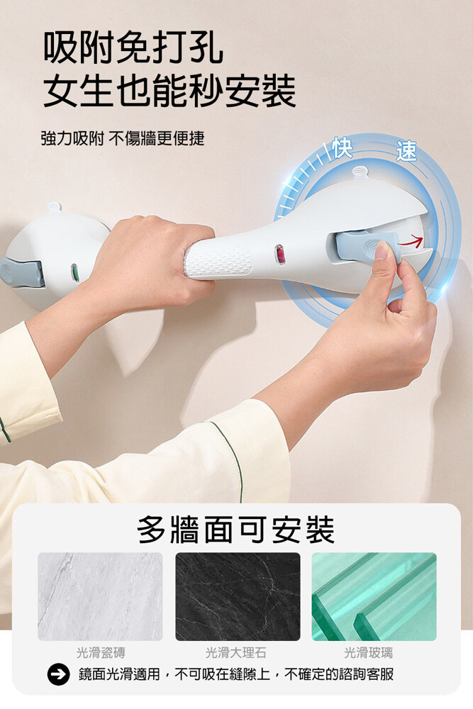 新款免打孔吸盤扶手 兒童洗澡扶手 孕婦老人浴室移門拉手(防滑扶手/秒扣強吸/輔助起身