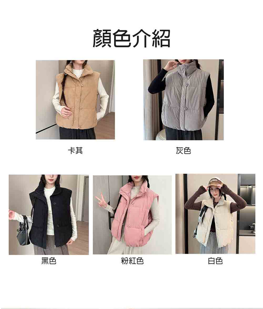 休閒純色寬鬆羽絨棉背心(KDCQ-K06/A01/6385/8332)現+預