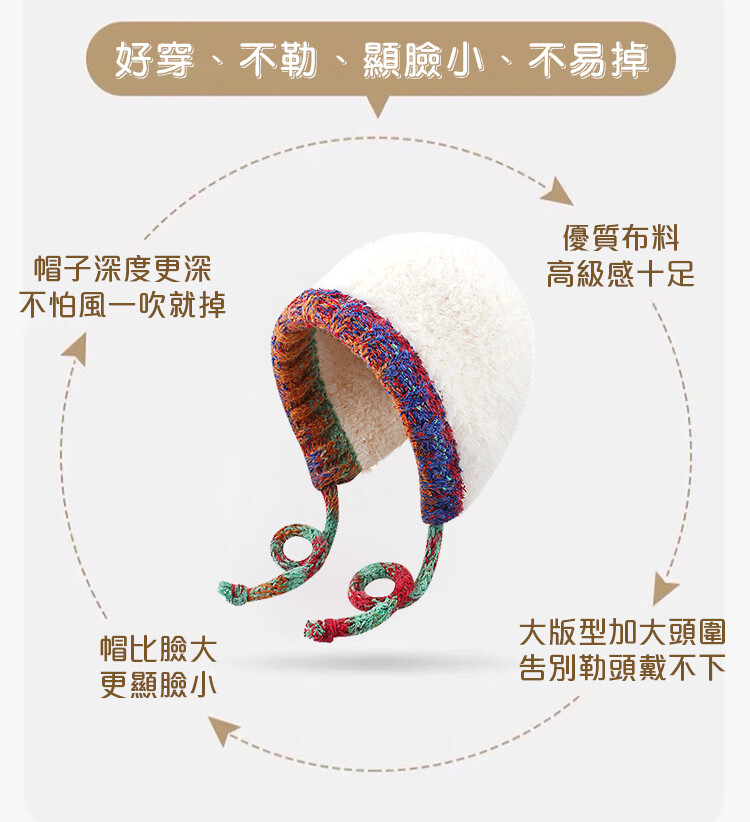 商品名稱:人氣款保暖仿兔毛軟綿減齡針織毛帽-2HA