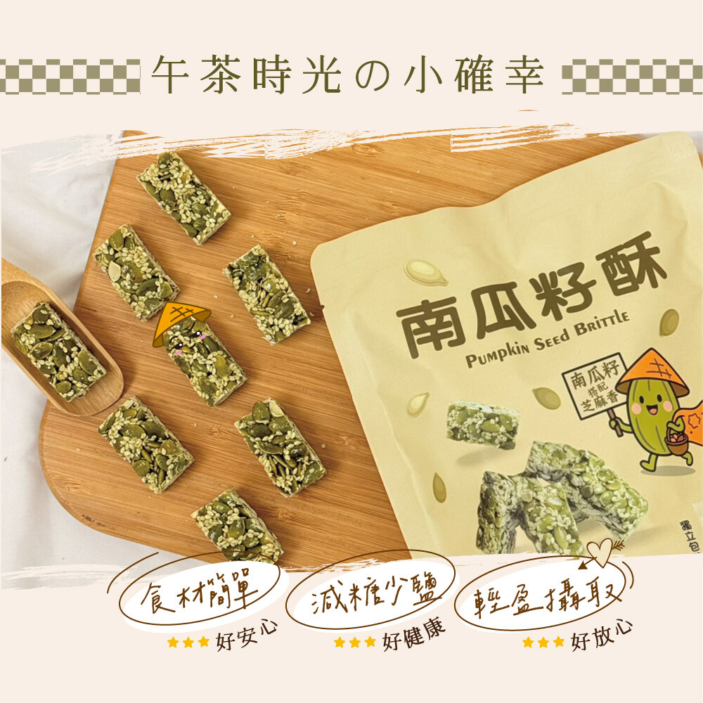 ◎營養南瓜籽×清香白芝麻,富含膳食纖維與礦物質 ! ◎經烘焙後散發自然清香,再以麥芽糖輕輕包裹,成就酥脆爽口的經典滋味 ! ◎甜度適中不膩口,營養與口感兼具 ~ ◎無論是一口解饞的小零嘴,還是伴手好禮,都能帶來滿滿健康能量 !!