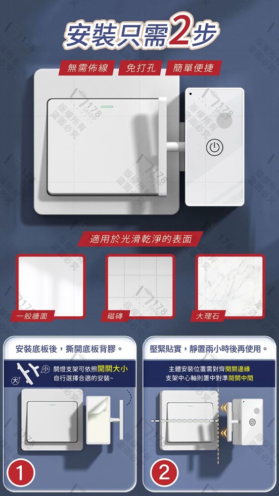 🛠️ 簡單兩步安裝:撕膠貼上、對準開關即可使用
