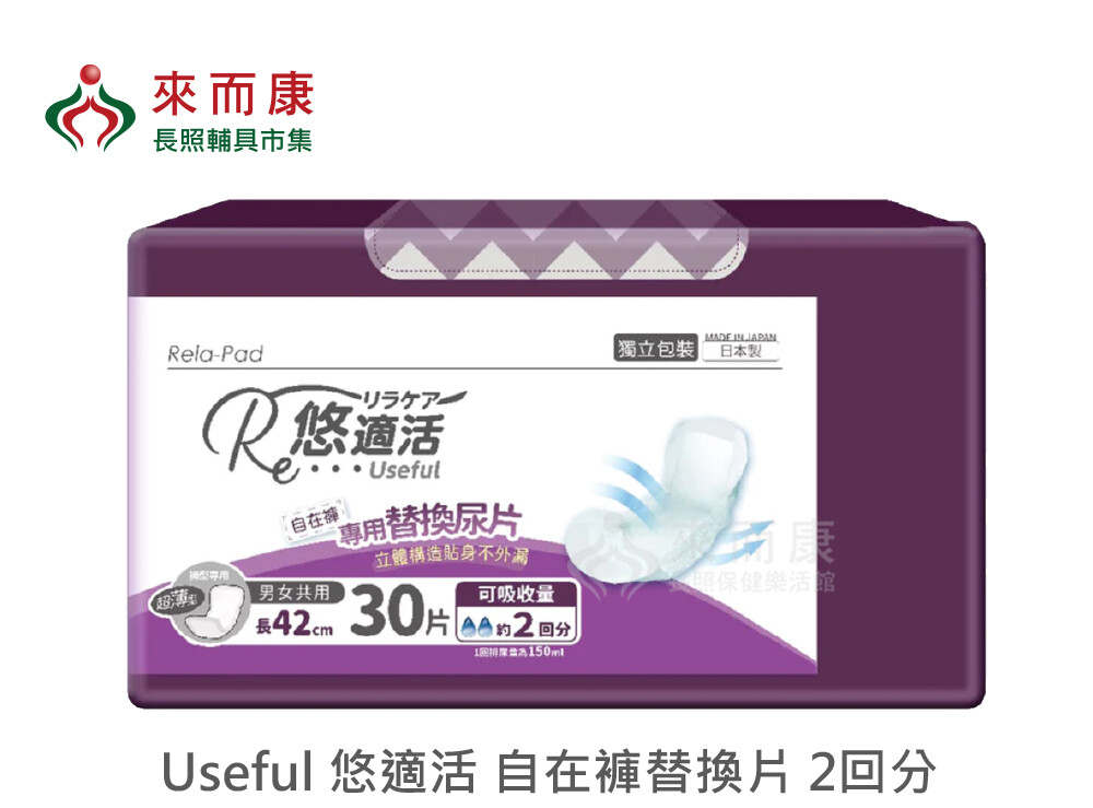 來而康 Useful 悠適活 自在褲替換片 2回分 30片/包 6包/箱販售 替換片 尿褲 替換尿片