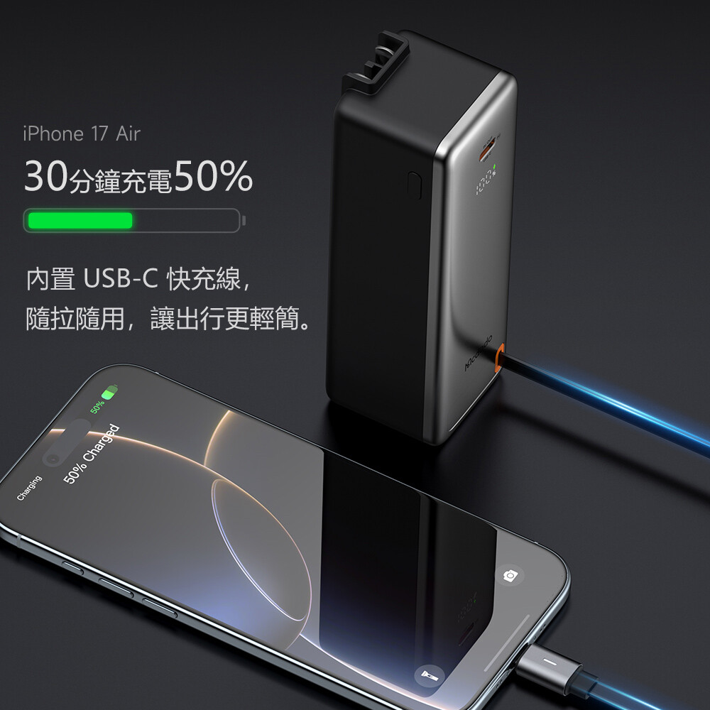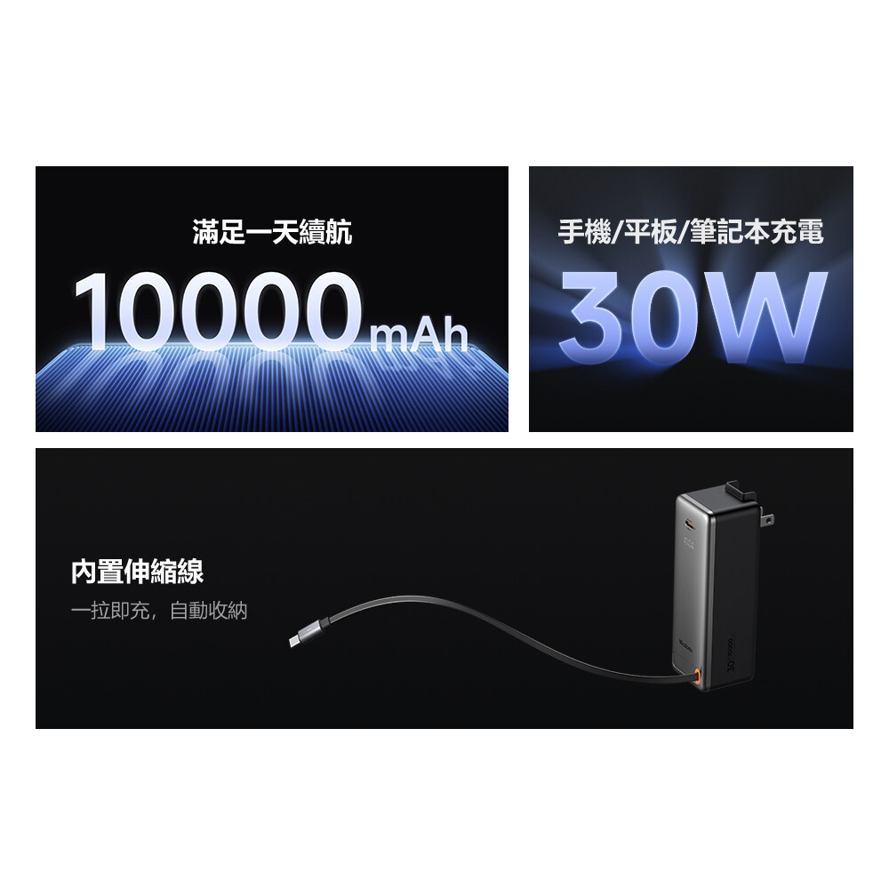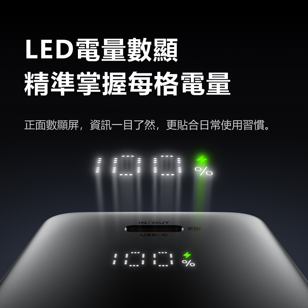 產品名稱:3合1USB-C伸縮線數顯行動電源 10000mAh 38.5Wh 國際版