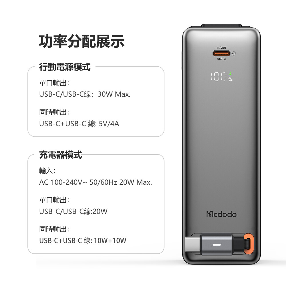 行動電源模式單口輸出(USB-C)(USB-C線):30W MAX.