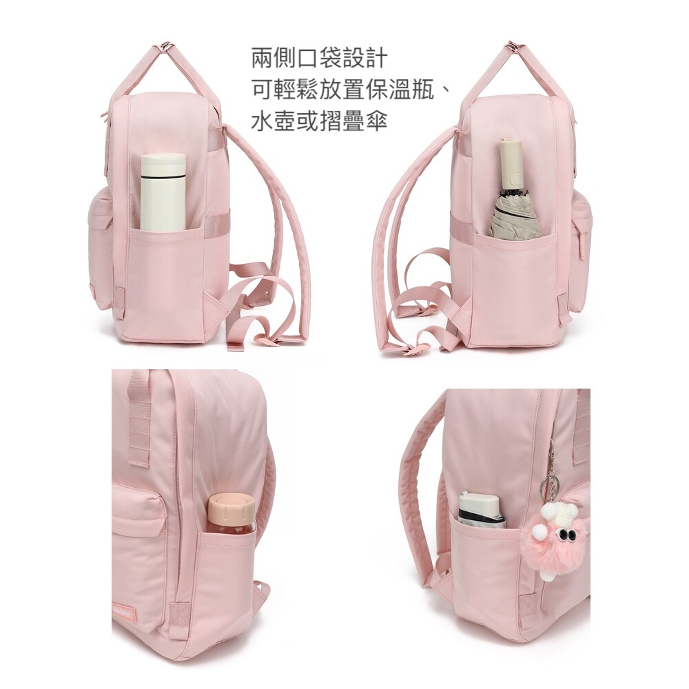 兩側水瓶側袋:方便拿取水杯或雨傘
