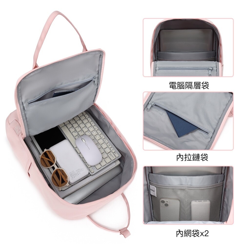 多功能內袋:包含內拉鍊袋和兩個內網袋,方便分類收納手機、錢包等小物