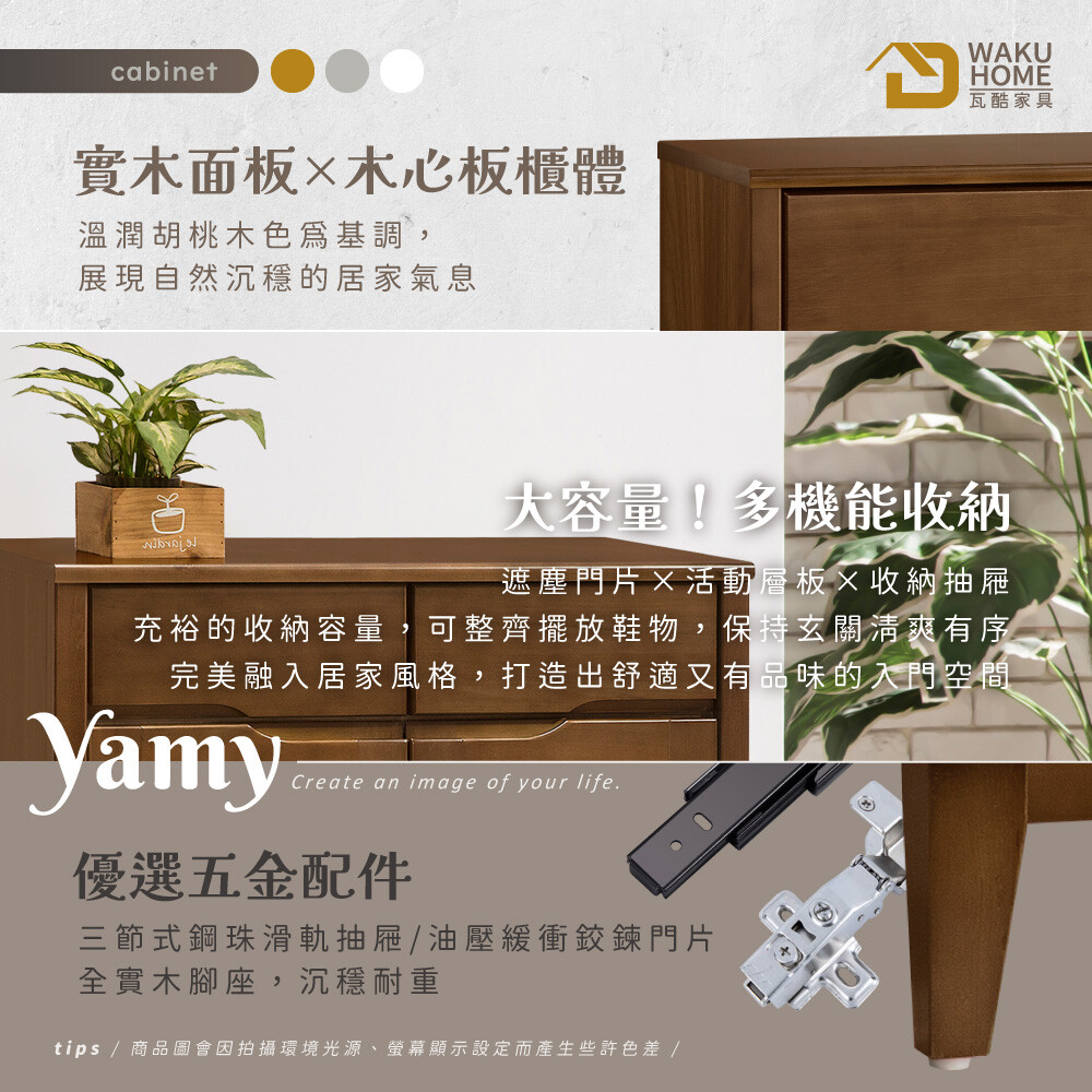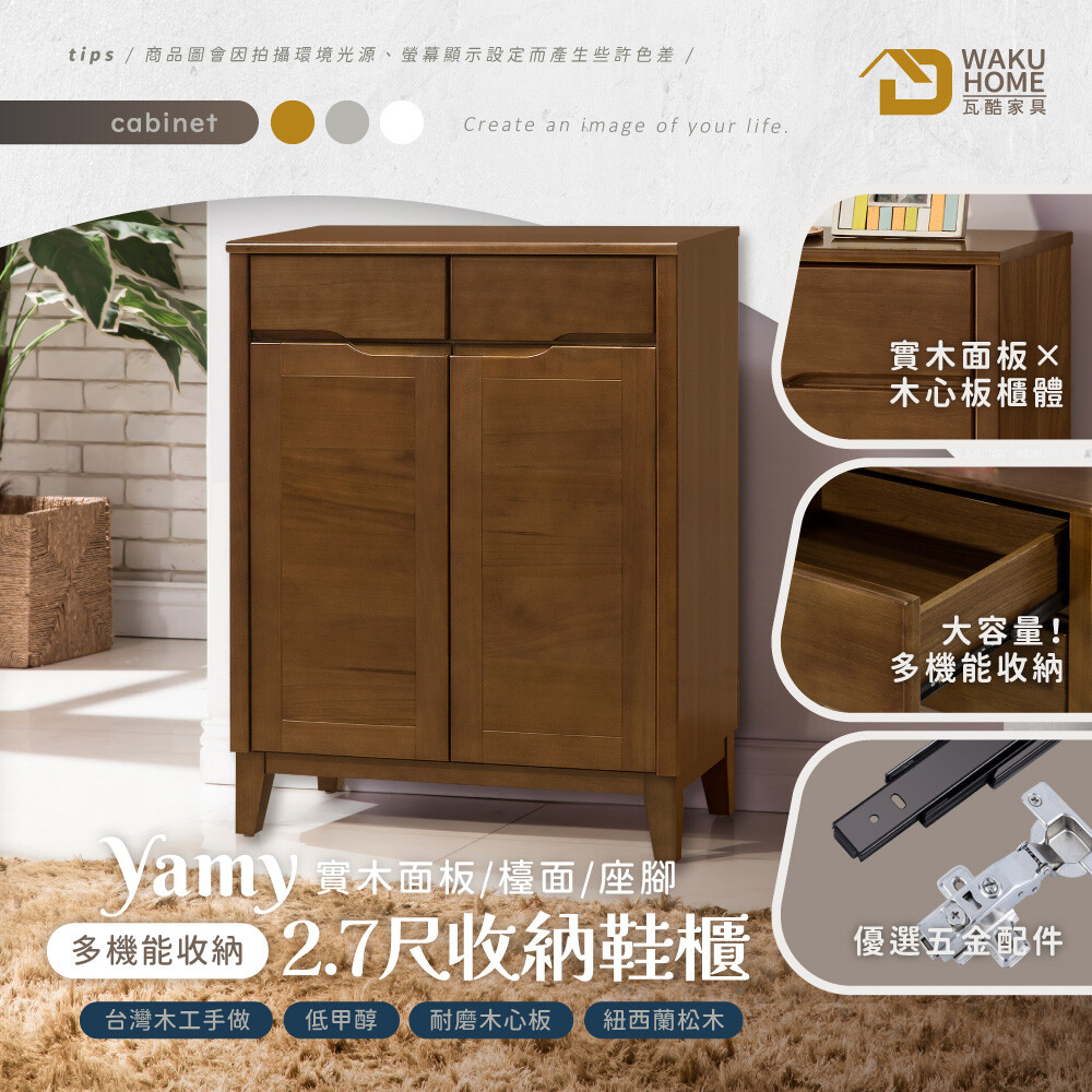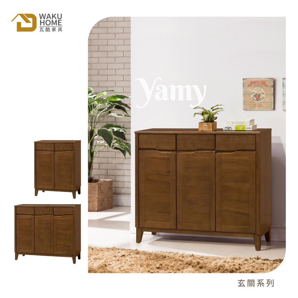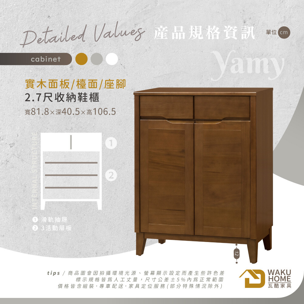 Yamy淺胡桃實木2.7尺鞋櫃 (實木面板/檯面/座腳)A010-547