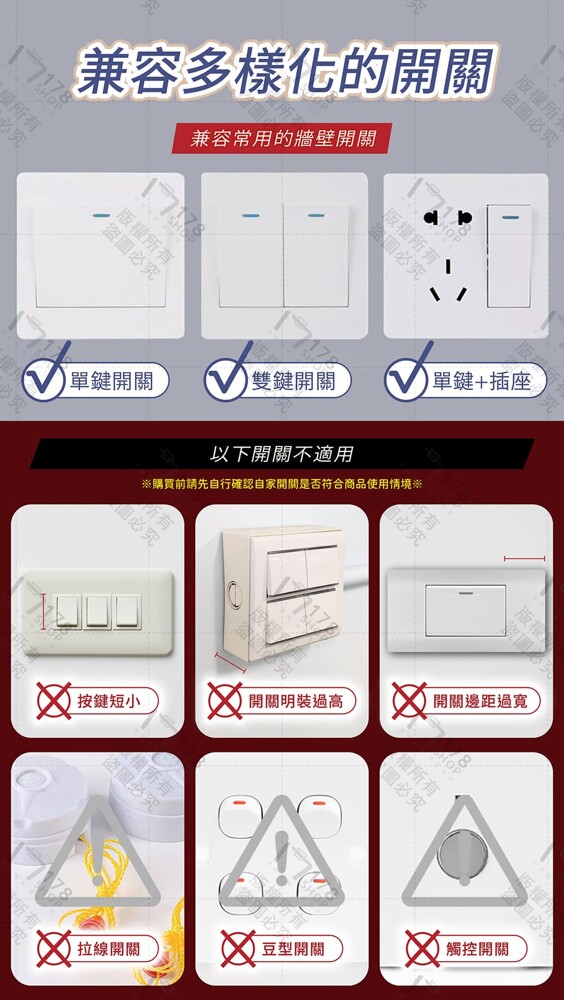 🧩 高相容性:支援單鍵、雙鍵、插座式牆壁開關