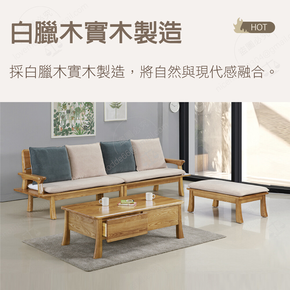 白臘木實木製造 絨布靠背墊
