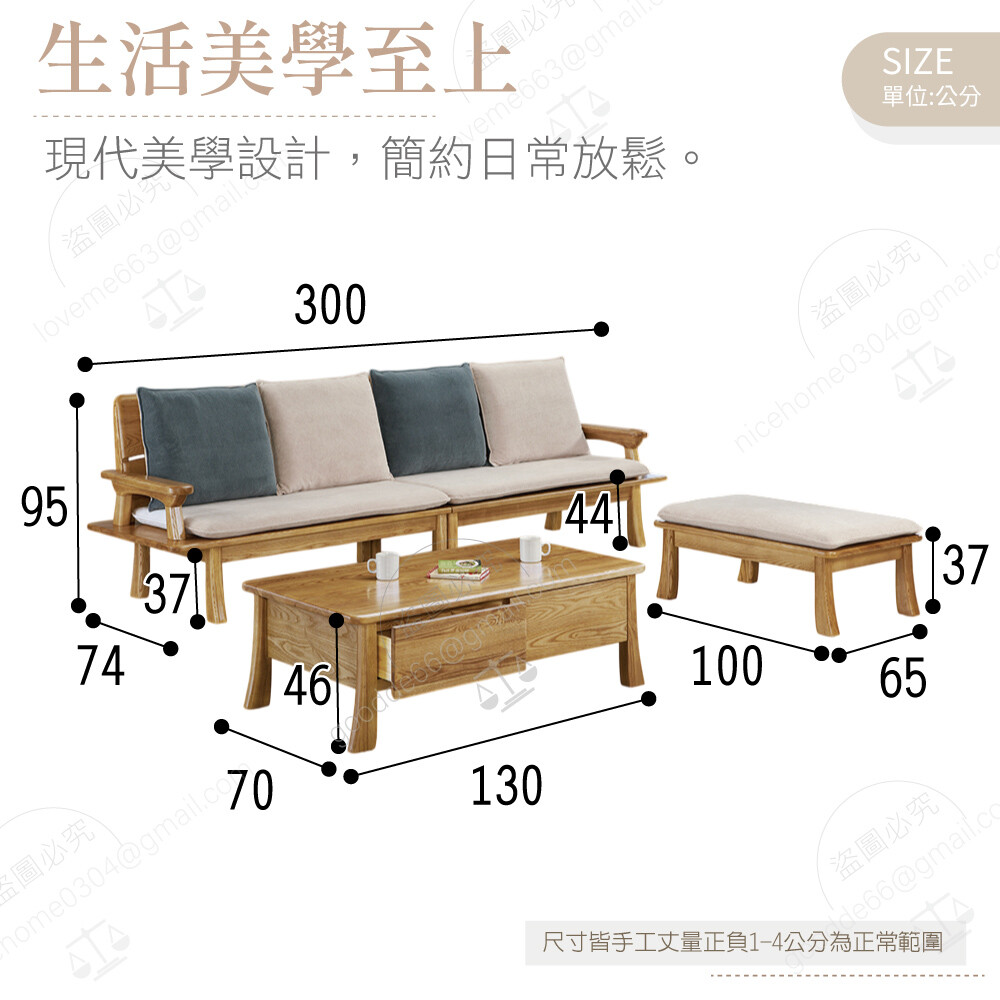 四人椅:寬300×深74×高95公分