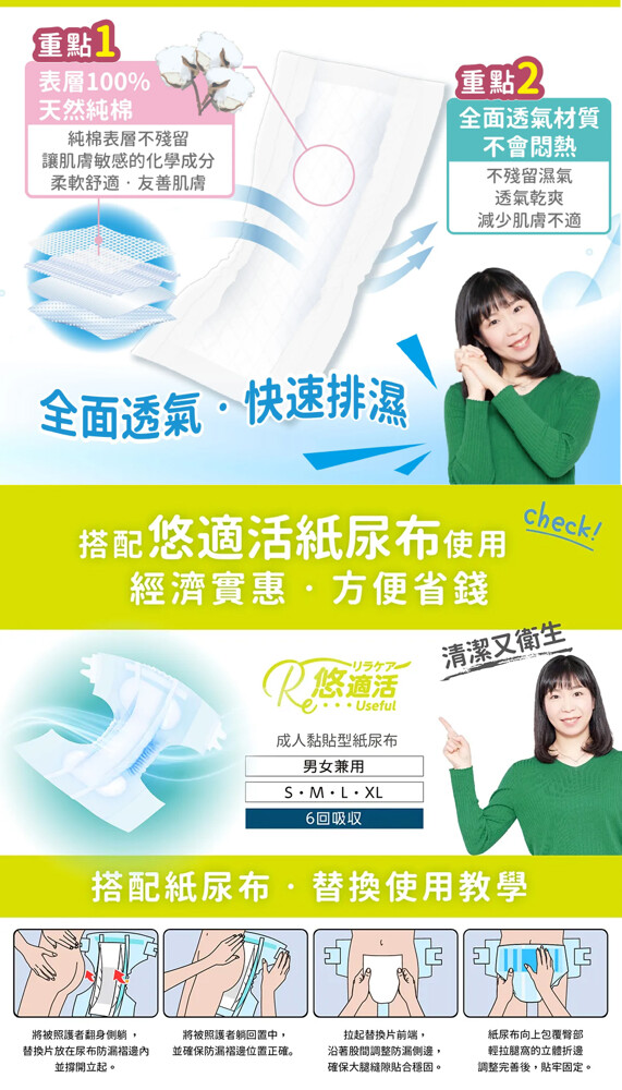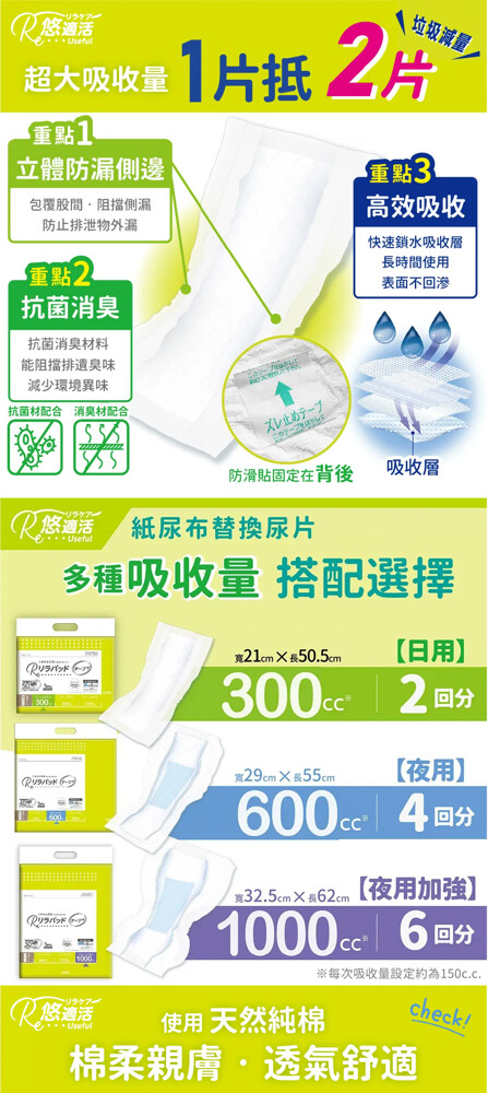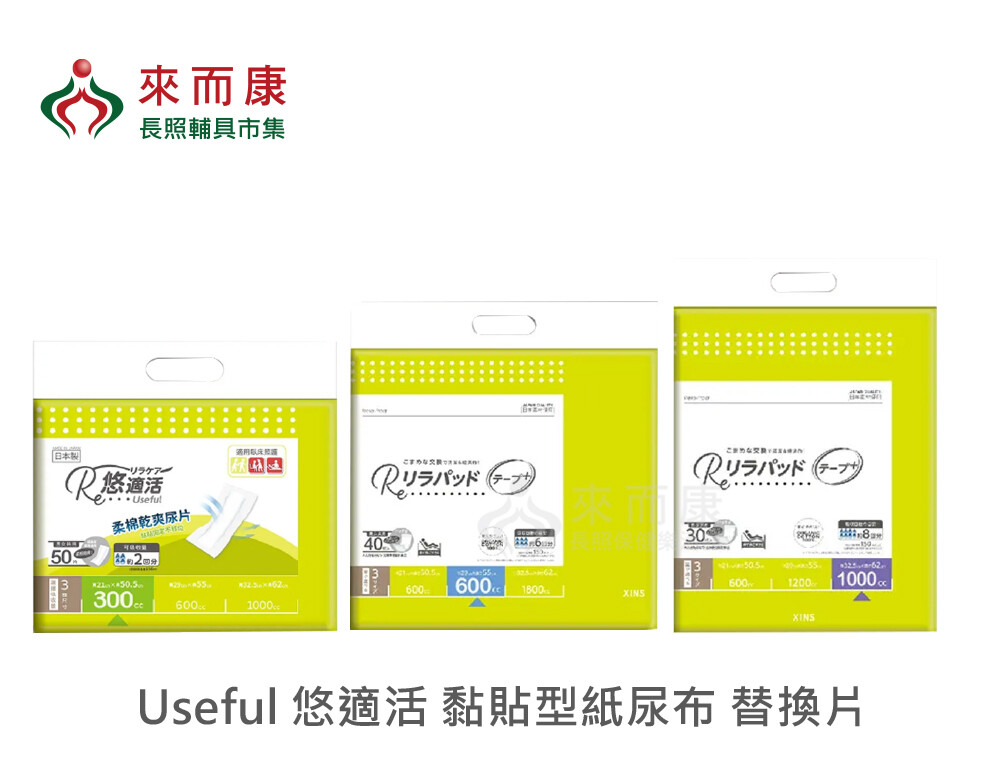 來而康 Useful 悠適活 黏貼型紙尿布替換片 6回分 30片/包,4包/箱 黏貼式 紙尿布