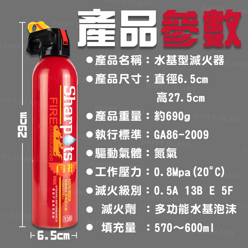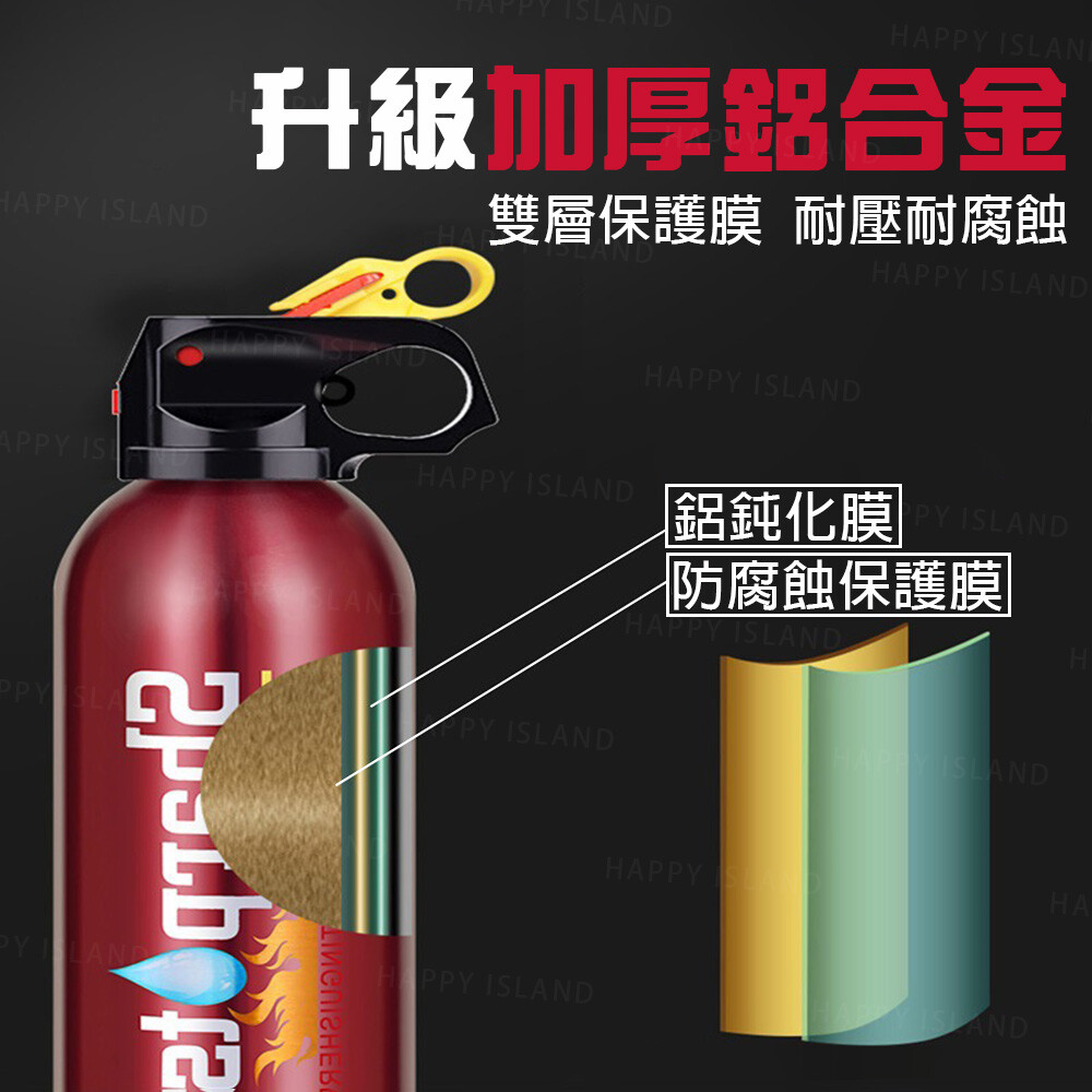 【商品特色】 ➥鋁合金瓶身 ➥車家兩用設計 ➥適用居家、辦公、車內、露營多種環境 ➥具備良好的抗壓耐腐蝕性,使用壽命更長 【商品規格】 〔品名〕:迷你型滅火器 〔顏色〕:紅色 〔容量〕:600ml 〔尺寸〕:29×6.5cm