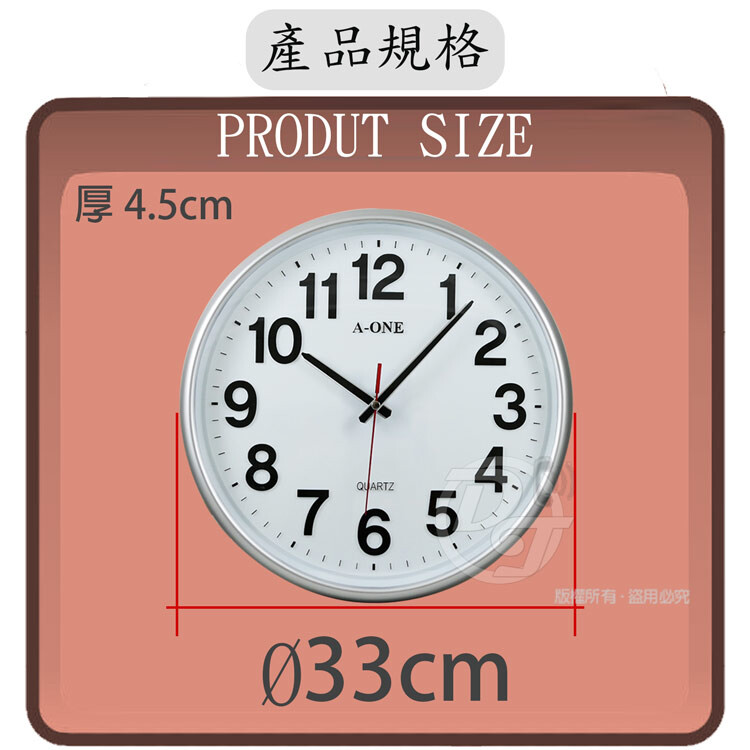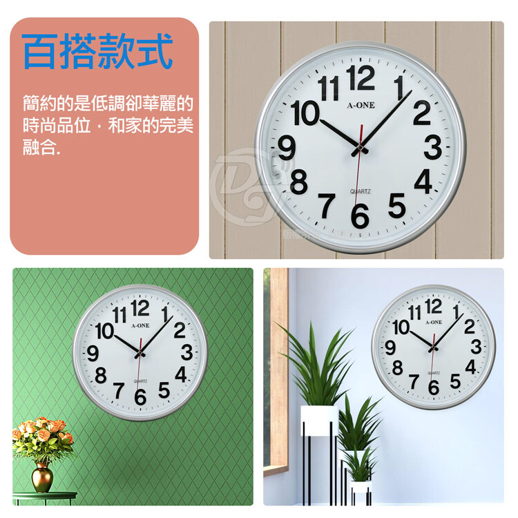 ◎品名:A-ONE金吉星 時尚亮銀靜音大數字掛鐘 TG-0236