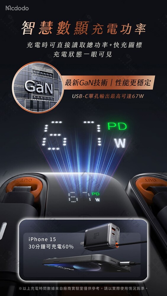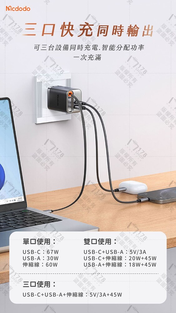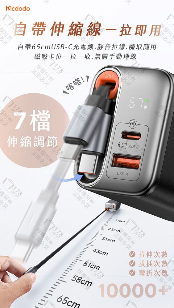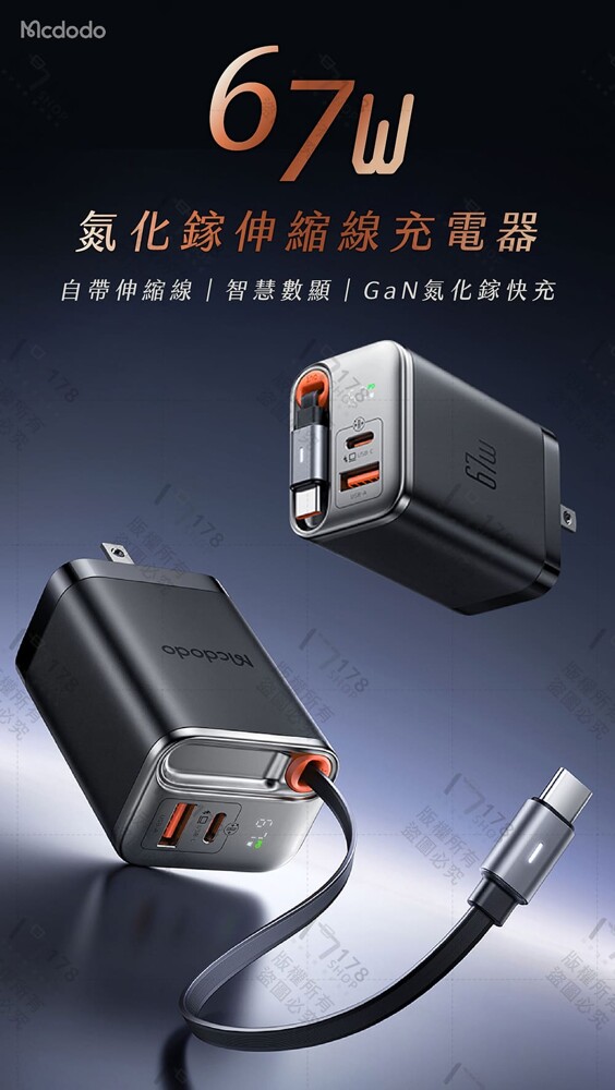 商品名稱:Mcdodo 67W 氮化鎵伸縮線充電器