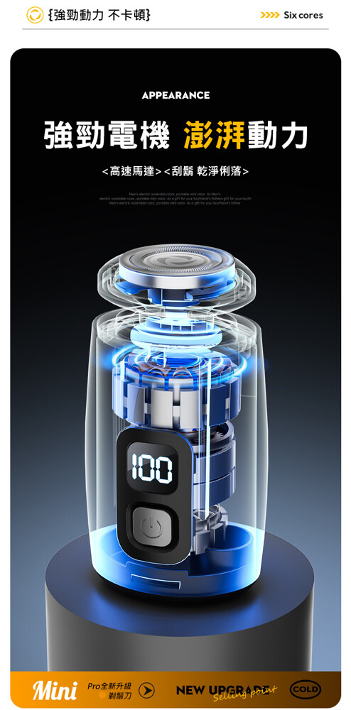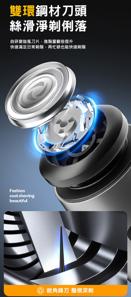 精工鋼材刀頭絲滑淨剃利落-自研磨旋風刀片,進鬚量翻倍提升快速滿足日常剃鬚,再忙碌也能快速剃鬚