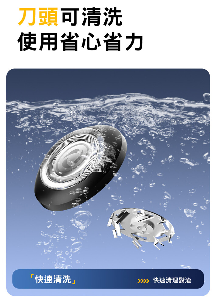 ※刀頭可清洗。清洗請注意,拆下刀頭沖洗鬍渣即可。主機禁止沖水喔。