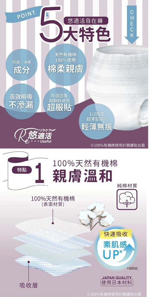 來而康 Useful 悠適活 自在褲 2回分 XL號 20片/包 4包/箱 尿褲 紙尿褲 日本製