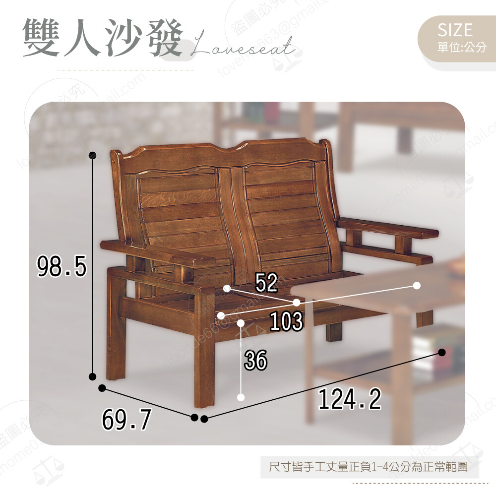 雙人椅:寬124.2×深69.7×高98.5公分,座寬103公分