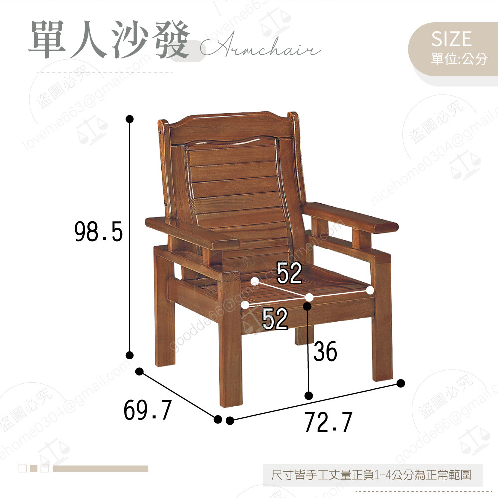 單人椅:寬72.7×深69.7×高98.5公分,座寬52公分