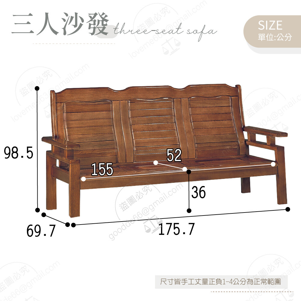 三人椅:寬175.7×深69.7×高98.5公分,座寬155公分