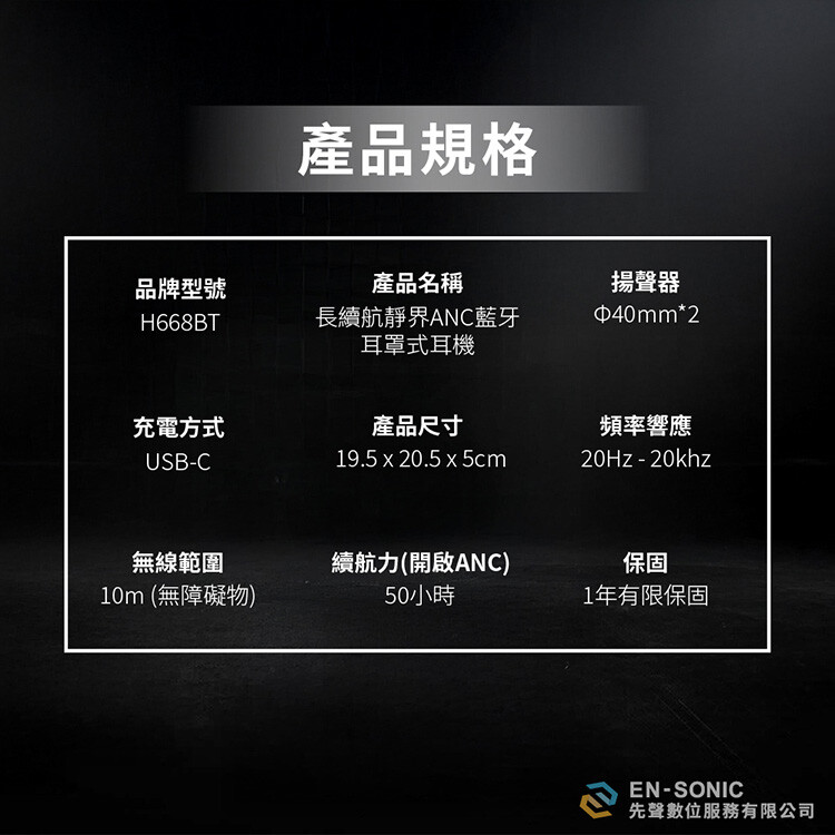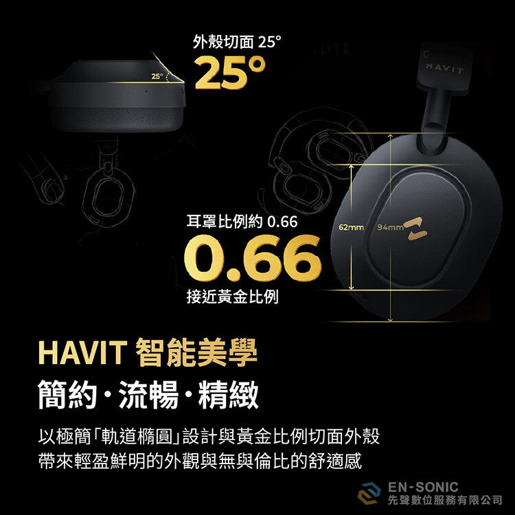 型號:【Havit 海威特】H668BT 長續航靜界ANC藍牙耳罩式耳機