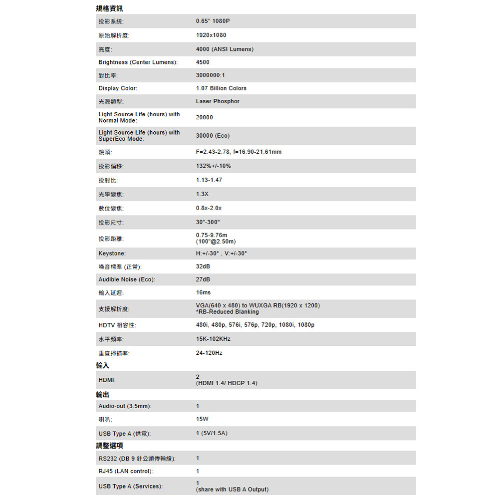-第三代雷射光源技術,壽命可達 30,000 小時